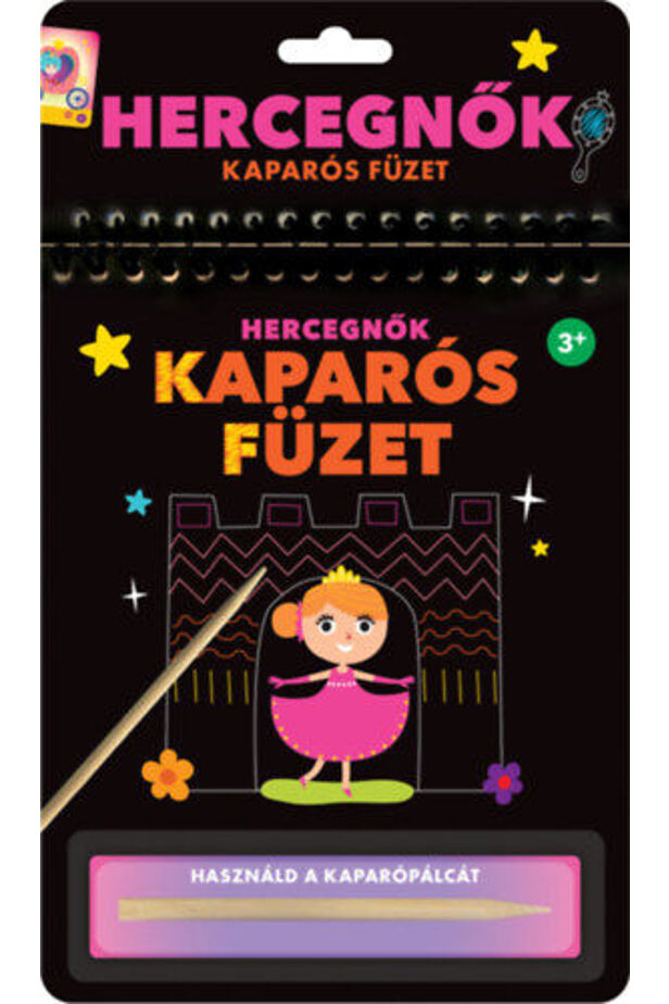 A Kaparós füzet - Hercegnők egyedülálló kreatív foglalkoztató gyerekeknek, amely kaparópálca segítségével mesés hercegnőket, kastélyokat és varázslatos tájakat tár fel. A tevékenység közben a gyerekek szórakoztató módon fejleszthetik kézügyességüket és kreativitásukat. Ideális időtöltés minden kis álmodozónak.