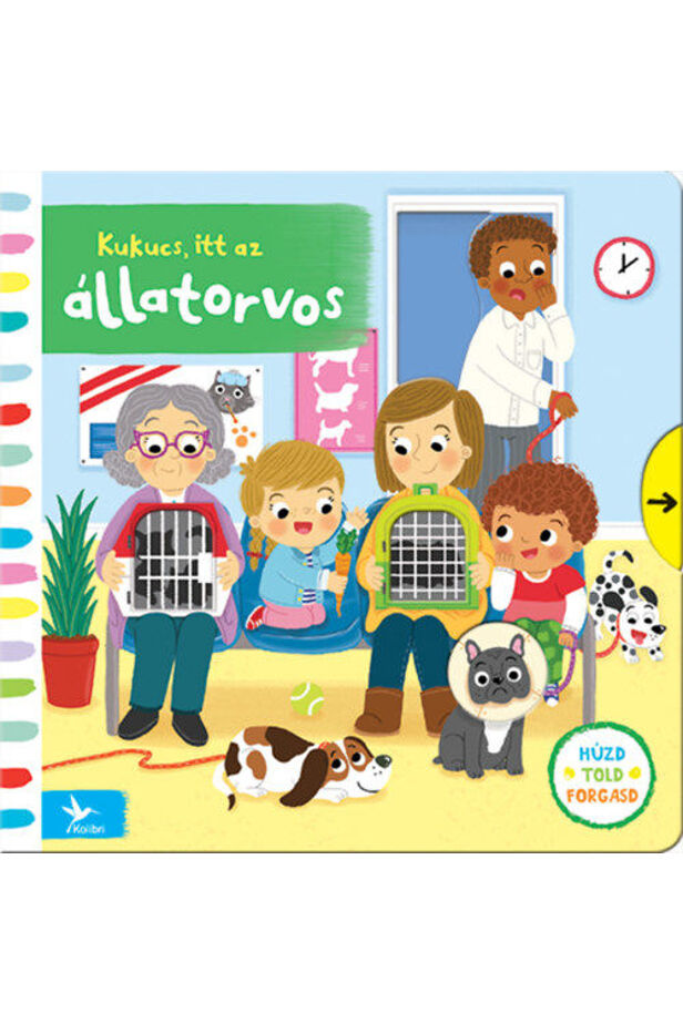 A Kukucs-könyvek kellően nagyok és strapabírók ahhoz, hogy állják a kíváncsiskodó ujjacskák rohamát. Kinyitható, tologatható és húzogatható részeik szórakoztató elfoglaltságot kínálnak a kicsiknek, a ritmusos versek pedig többszöri, közös mondókázásra csábítanak. A Kukucs, itt az állatorvos minden lapja izgalmat tartogat: a félős nyuszi oltást kap, a cica lábát sínbe teszik, és végül minden kisállat meggyógyul.